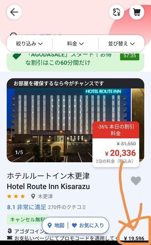 全国旅行支援無しでもお得に泊まりたい! コロコロ変わるagodaの料金 agodaはなぜ安い agodaって大丈夫!? 全国旅行支援無しでもお得に泊まりたい! 今年の冬の旅行は千葉・木更津方面に2泊3日で行こうと決め、朝食バイキング付、大浴場ありで値段が手ごろ…
