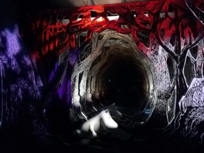 ムーミンバレーパークですが、頭上に大量の傘、下からはミストが吹いて幻想的。